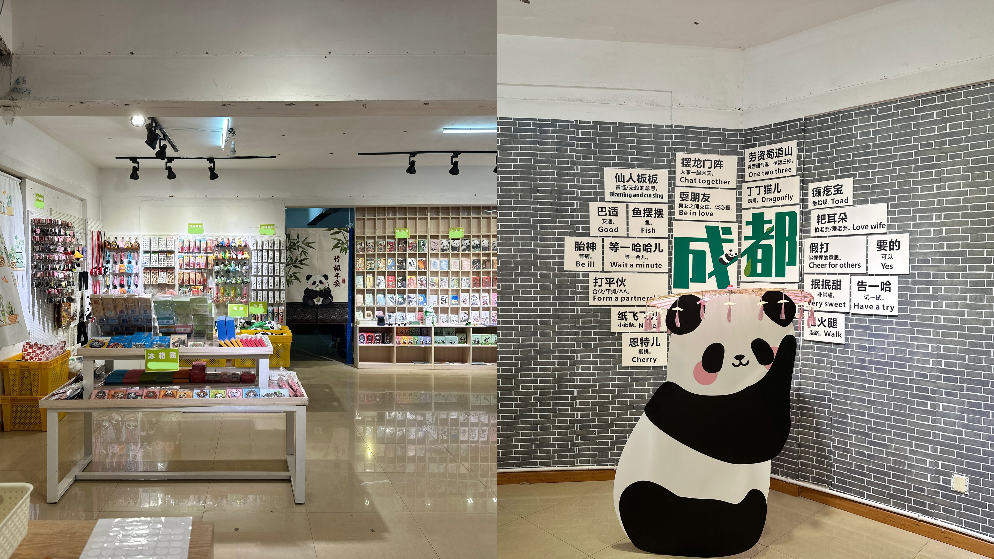 - Various panda-theme accessories, and with Funny Chengdu(Sichuan) Dialect Wall, it is open to the public, and every day there are tourists who come to visit, check in, take photos, and
